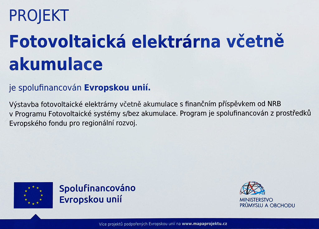 V současné době probíhá v naší provozovně výstavba fotovoltaické elektrárny včetně akumulace. Projekt je spolufinancovaný z Evropského fondu pro regionální rozvoj. Předpokládané dokončení je v listopadu 2025 a díky němu bude provoz naší firmy ještě více šetrný k životnímu prostředí.